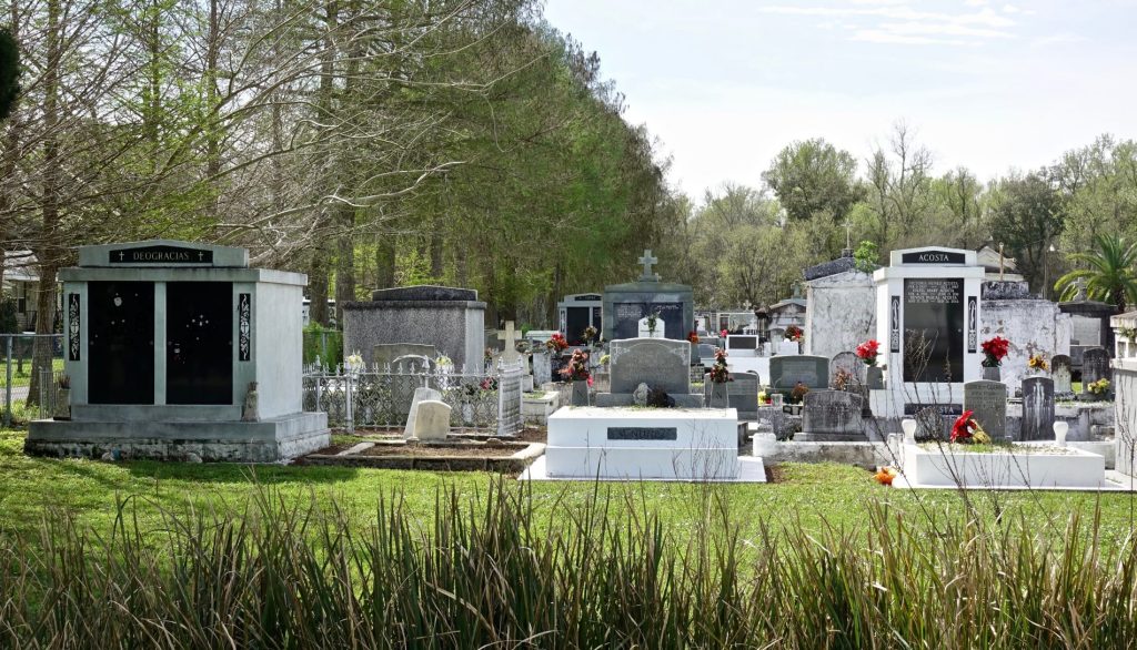In a few remote places of the bayou country of Louisiana there supposedly are people still speaking French. On the other hand, in this far eastern part of Louisiana, in St. Bernard Parish, Canary Islands Spanish of the 1700’s was spoken here until quite recently by people called Isleños. The road passed by their graveyard that had Spanish names like Acosta, Deogracias, Gallardo, and Nunez, some with nonstandard spellings, like the name Goutierrez.