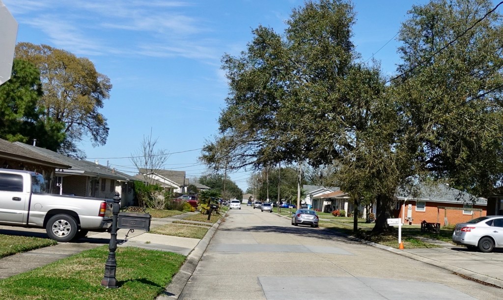 I biked through Chalmette neighborhoods with their razor straight streets.