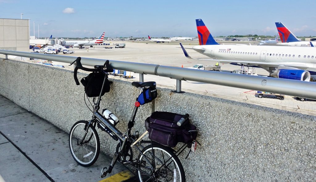 The Fort Lauderdale airport is actually quite easy to reach by bicycle. You can bike there from downtown in about half an hour. At the airport I retrieved my suitcase, disassembled the bicycle, and made my flight with no problems.