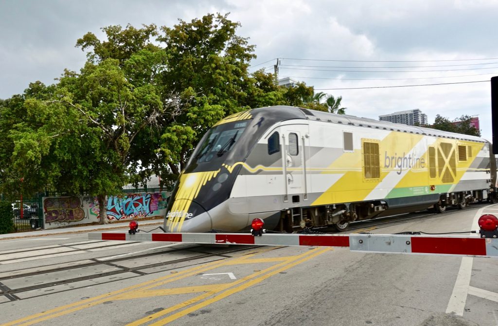 I was still a mile or two from the Brightline rail station on the west side of downtown Miami, but I managed to see a Brightline train heading north as it passed through this grade crossing at an angle.