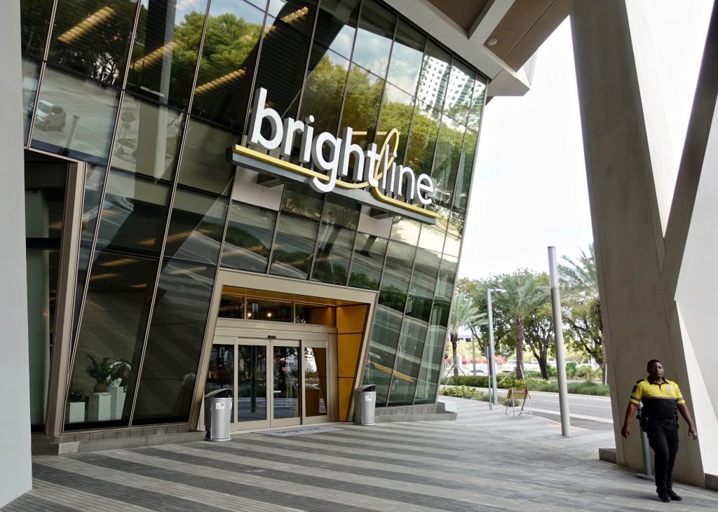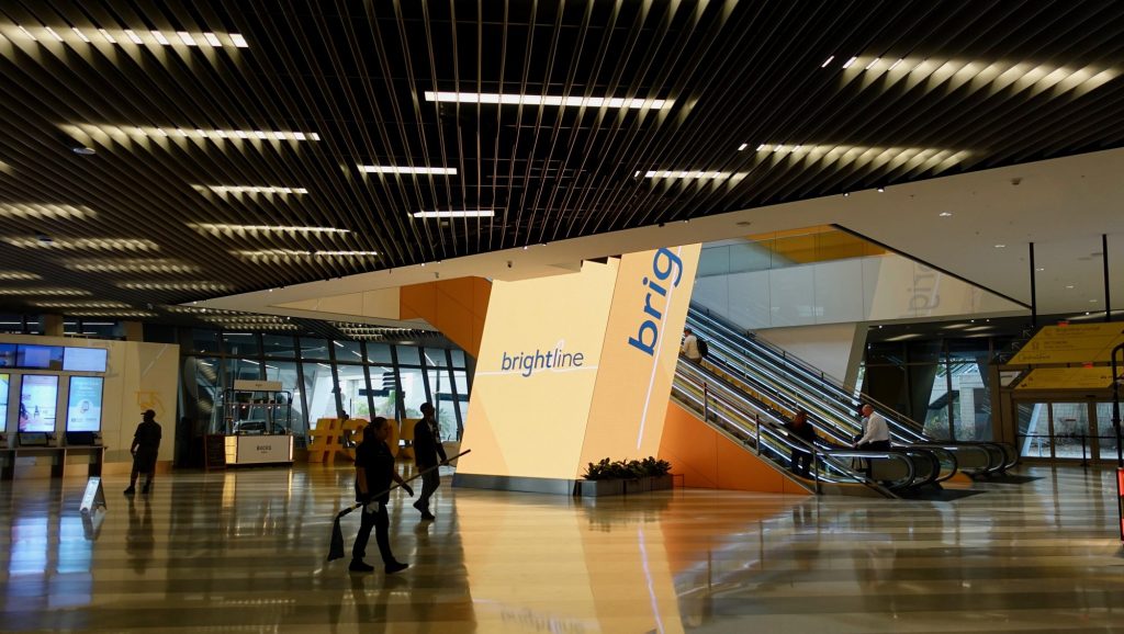Brightline currently only stops at three places, Miami, Fort Lauderdale, and West Palm Beach. All three stations are brand new and use the same style of architecture, emphasizing these V shaped patterns. I assume the railroad has a commercial stake in these tall buildings rising above the Miami station.