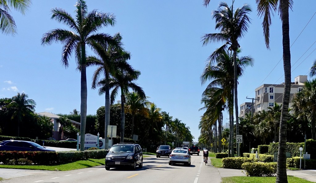 At Lake Worth, just a few miles south of where I had stayed the previous night, I turned east and crossed a causeway over to the barrier island that is Palm Beach. This thin island stretches all the way south more than forty miles to Fort Lauderdale Beach, passing through Boca Raton along the way.