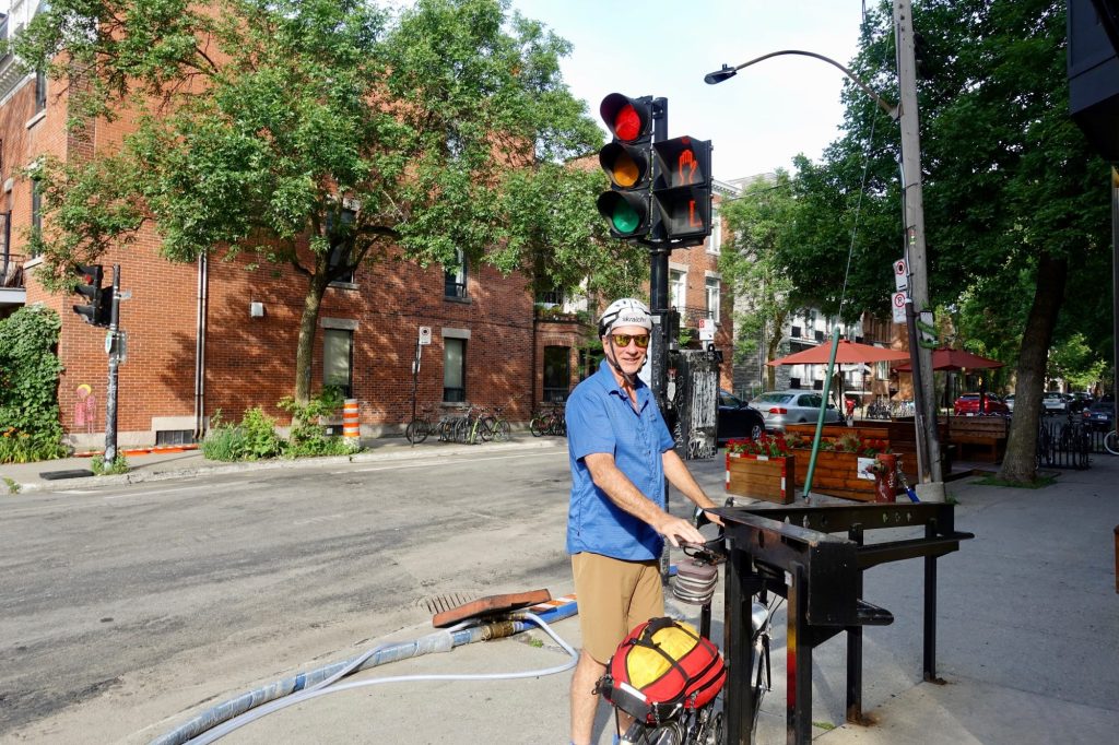 The next morning we biked through the streets of Trois-Rivieres before leaving town north on the highway along the river. I suspect almost no one has air conditioning, people were hanging outside.