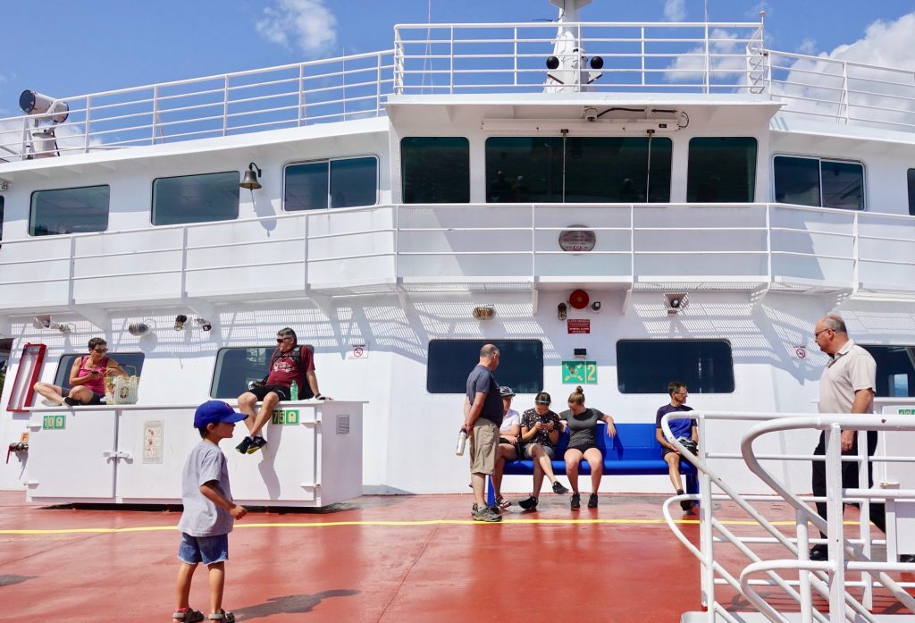 About lunchtime we checked out of our Airbnb and rode our bicycles to the ferry landing at the riverfront of Old Town. We got a surprisingly good pasta lunch among the tourists and souvenir shops.