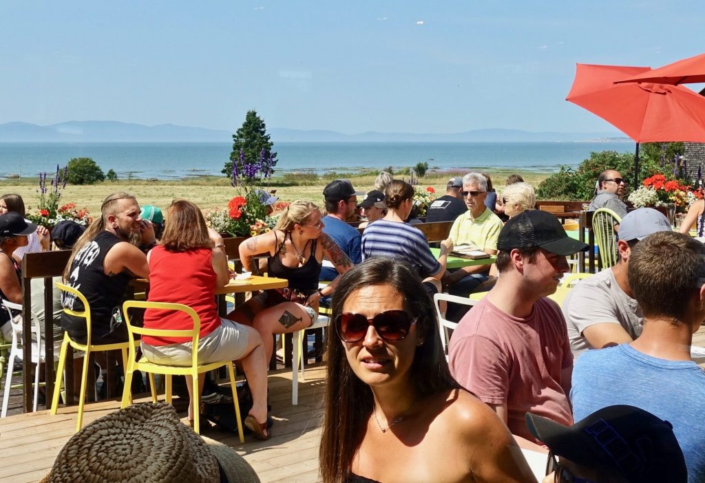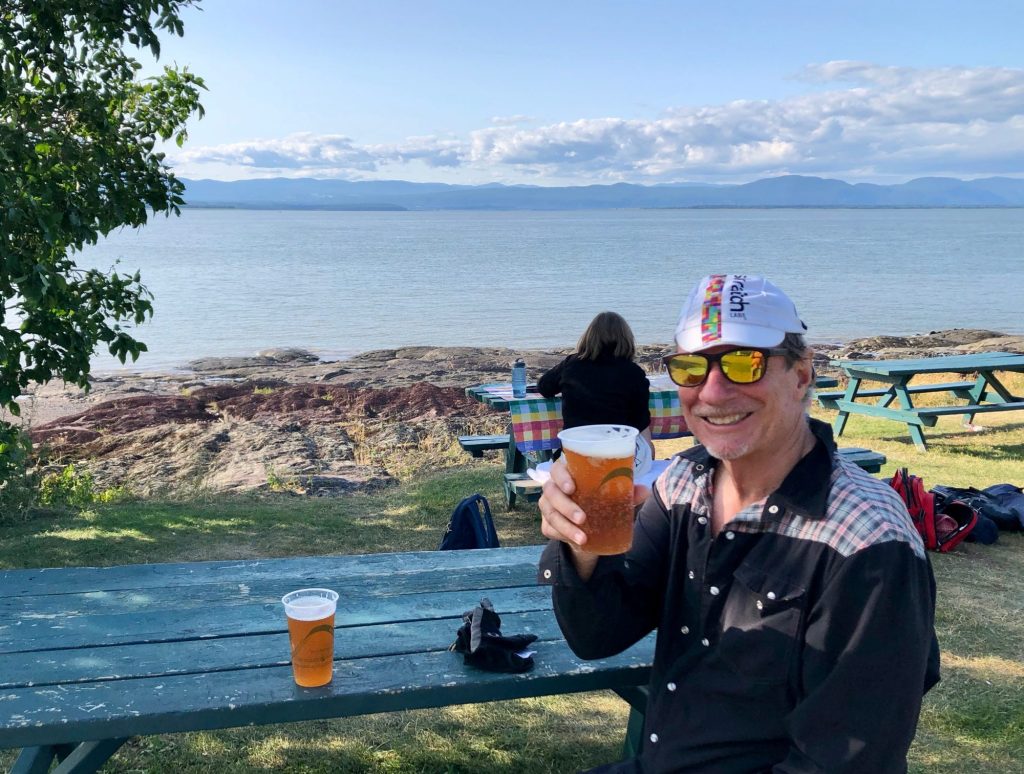 Maybe it was the weather but this whole stretch of road gave off a wonderful vibe, as La Route Verte meandered along the riverfront on a thin road with almost no traffic. A few miles further there was an outdoor barbecue stand fronting the river, the mountains lining up on the other side. We skipped the barbecue but got beers. Eventually we started chatting with a nice couple also there enjoying the afternoon even though we barely understood each other’s languages! They are from Quebec City, they drive out here sometimes just to enjoy the view.