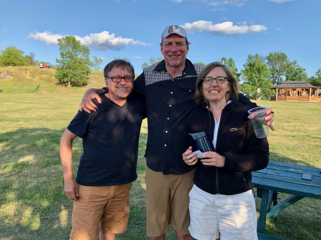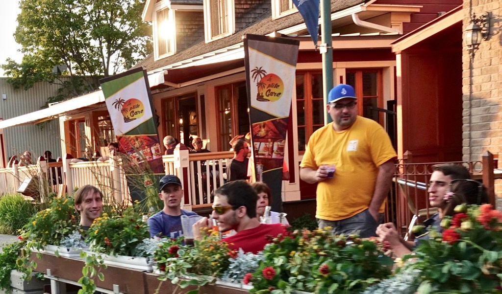 Air fares to Canada tend to be expensive, and driving with the bicycle saves advance planning and causes less global warming. With my Bike Friday in the back I drove our 2005 Toyota Prius up from North Carolina. My friend Lyman had flown in from Austin TX and I picked him and his Bike Friday up at Baltimore’s BWI airport. We then overnighted with my sister Betsy and her husband George in Princeton NJ. She was not going to bicycle on this trip but she rode with Lyman and me in the car six hours up to Montreal so she could use my car to noodle around Quebec on her own. We stopped for a beer at a brewery in Plattsburgh NY, just south of the Canadian border.