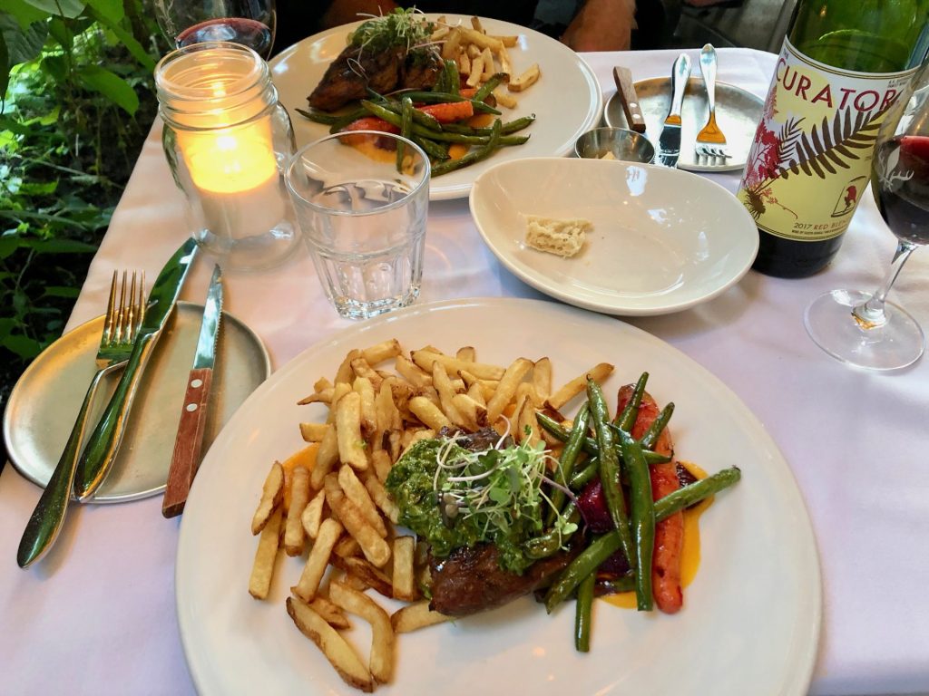 It was a different vibe from the bar scene at Billie Jean. Le Buck is a fancy restaurant with outdoor seating where both of us got steak frites, no appetizer, and a shared bottle of the lowest cost red wine. It may have been the best meal of the entire trip.