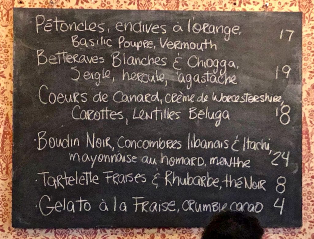 On this Tuesday night in July restaurants were busy! My friend Joe back in North Carolina had recommended we eat at Le Lapin Sauté, but tables were unavailable. On the phone a place called La Buvette did not have a table but could seat us at the bar at 8:30 PM. It was hip and expensive and delicious and pretentious but somehow not totally memorable. It might have been because I felt we did not get enough to eat! (Lyman had gotten the “mozzarella foam” appetizer!)