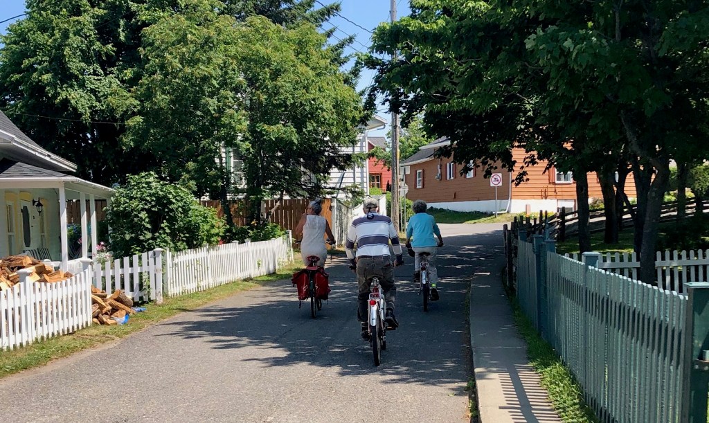 Back on the bicycles we cycled up to Riviere du Loup (population 24,000) which along with the upcoming Rimouski is one of the two larger towns in this area. Both are college towns. The Riviere du Loup downtown sits up on a bluff above the river.