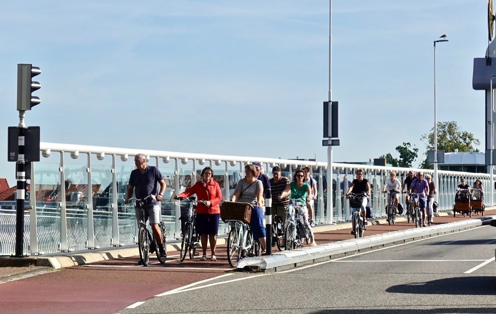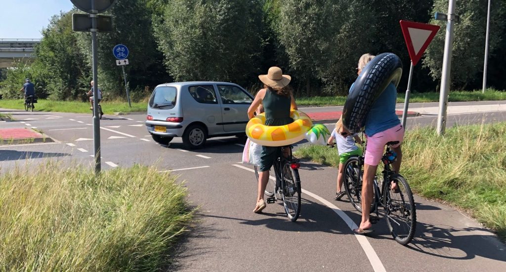 Groningen is population 260,000 including about sixty thousand students at two major universities. Bicycling through the suburbs on the south side on a hot day, this family was headed towards the water.