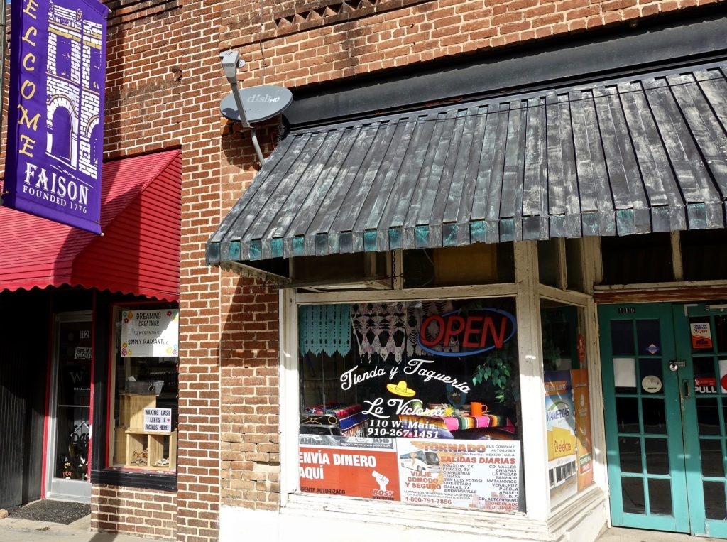 In an otherwise mostly empty downtown Faison NC, Hispanic immigrants have opened new businesses.