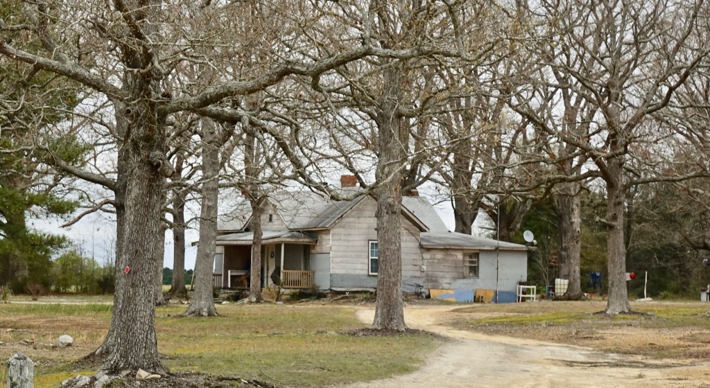 I bicycled out of town towards Soul City, twelve miles to the northeast. Henderson is in Vance County but I soon crossed the line into Warren County. Warren County is one of several counties in northeastern North Carolina that are majority African-American. Despite being only fifty miles from Durham the population is not growing. Warren County had a population in 1840 of 13,000; 1880: 22,500; in 2020: 19,500. I did not see a lot of productive-looking agriculture. People seemed to be living in small settlements spread across the rural landscape.