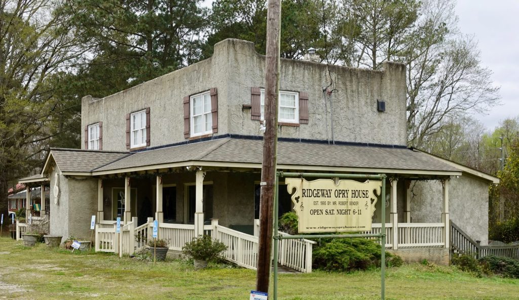 Five miles past Soul City the town of Ridgeway is not much of a town, just several houses plopped around an intersection on two lane US-1. I had not heard of the Ridgeway Opry House but it seems like it was very much a going concern up until the coronavirus thing. YouTube has videos of people even older than me singing and playing Old Time/Bluegrass/Country for six dollars cover on Saturday nights.