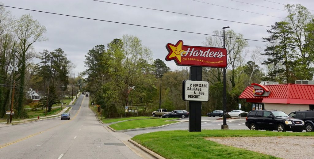 Warrenton, the seat of Warren County looks bigger than its population: 858, less than the 1,500 people who lived here back in 1860. Soul City had had no extant businesses. Warrenton has several restaurants including a Hardee’s.