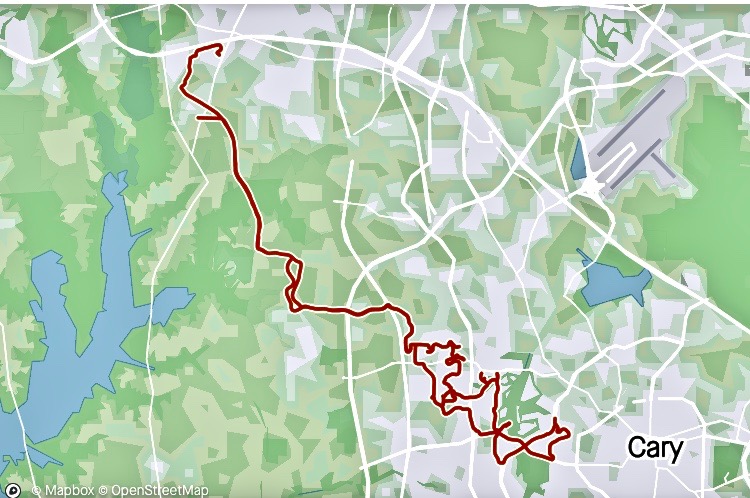 I eventually started meandering around back in the direction from which I came; I got back on the American Tobacco Trail. Here is the total ride, a little more than forty miles total.