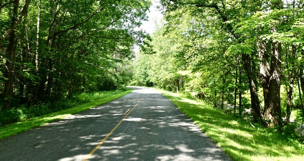 At elevation in the North Carolina/Virginia mountains there is cooler summer weather. The major problem with bicycle touring on the Blue Ridge Parkway is that it is devoid of services. Even drinking water is not always available. The Parkway was specifically built to give automobile passengers an experience of being outside of commercial culture. While it is not a problem for a car traveler that most motels and restaurants are several miles off the parkway, usually down a long hill, that can be challenging on a bicycle, especially when you have already been pedaling up and down hills all day.