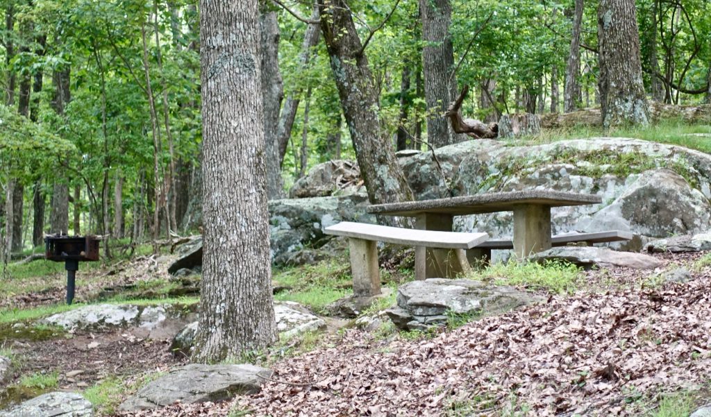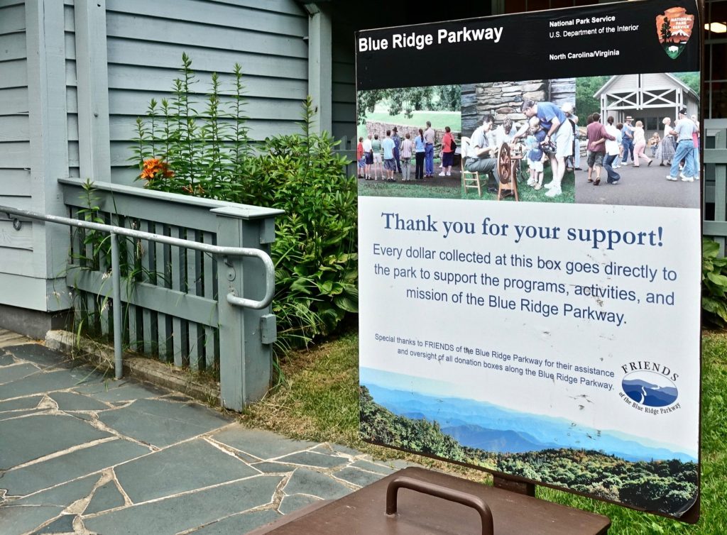 I stopped for lunch at the Rocky Knob picnic area. I think it used to be a campground. The Blue Ridge Parkway is funded and maintained by the National Park Service. The picnic tables were totally falling apart.