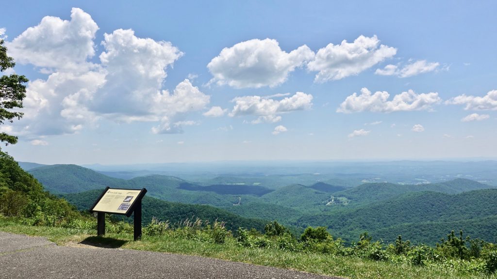 The Blue Ridge Parkway is a delight to bicycle. In this section there were stretches of ten or fifteen minutes between seeing a car. Sometimes it felt like a giant bike path. About half of the vehicles passing me were motorcycles. The Parkway was built at a time when going for a car ride could be a liberating experience. Who thinks like that now? On a bicycle the weather was cool and the scenery lovely.