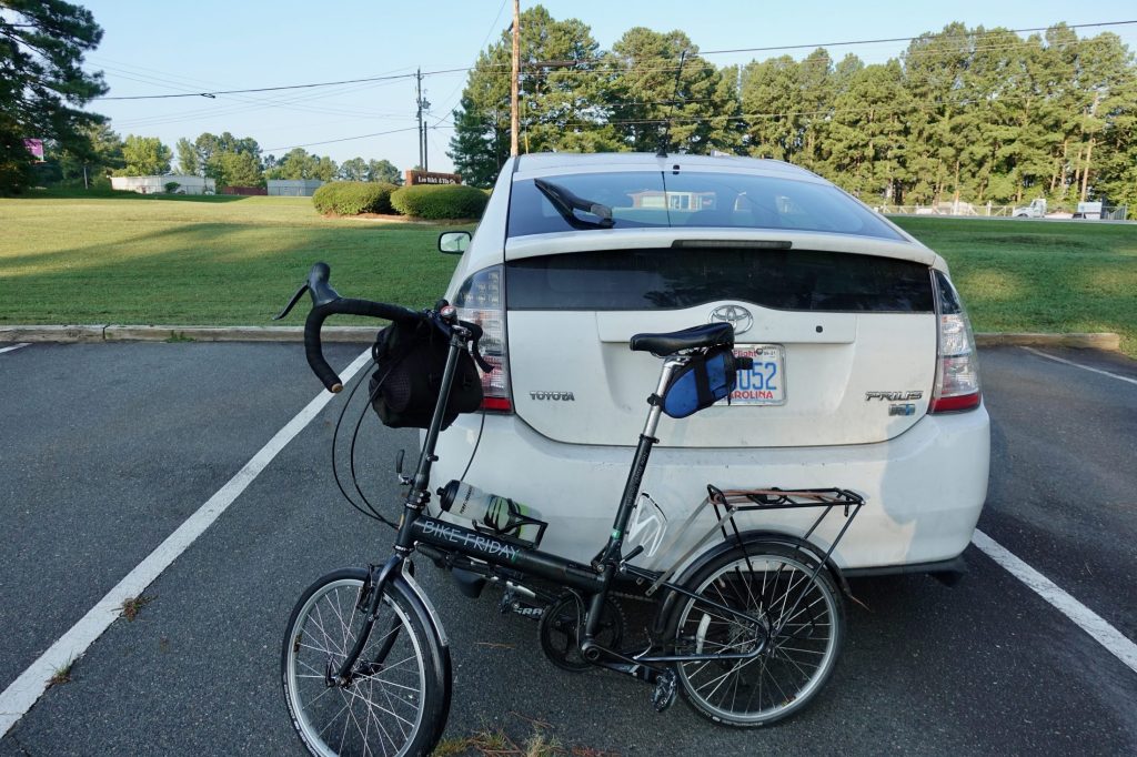 There’s a pandemic and it is hot. What to do? Whatever bike riding one does, it has to be done early. I left home at 6:45 AM and drove the white Prius thirty-five miles from Chapel Hill NC to the northern edge of Sanford NC. I skipped breakfast and coffee. Sanford (population 28,000) is by government statistics considered part of the Raleigh/Durham area, although far off to the west and south. Sanford is geographically in the middle of North Carolina, forty-two miles west of Raleigh and sixty miles southeast of Greensboro. It seems to always have been a factory town. It is the seat of Lee County, which I just learned today was formed as a county only in 1907 and named of course for General Lee, just at the height of the stirring up of memories of the “lost cause” and new state laws restricting African-Americans. Robert E Lee was NOT from North Carolina, as if anyone needs to be reminded of that.