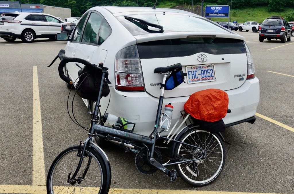 It had been a ten hour drive from Chapel Hill NC. At four in the afternoon I pulled the Bike Friday from the back of the Prius in the parking lot of a Walmart in Warren PA. Other people there did not seem to notice. I was making a big assumption that Walmart would not care if I left our car here for 3-4 days.