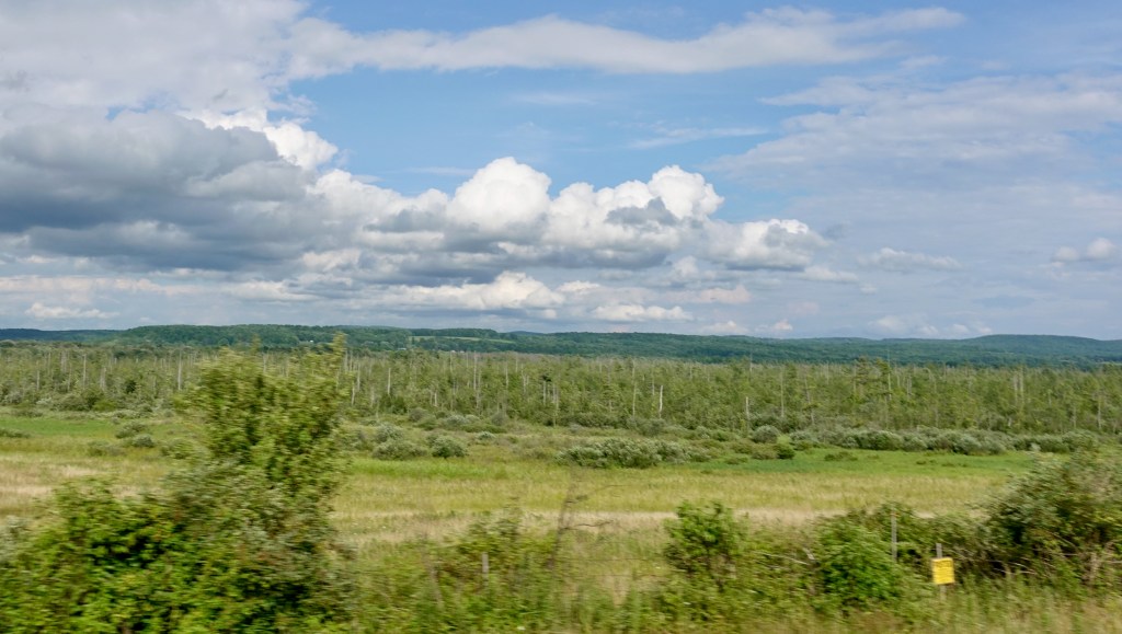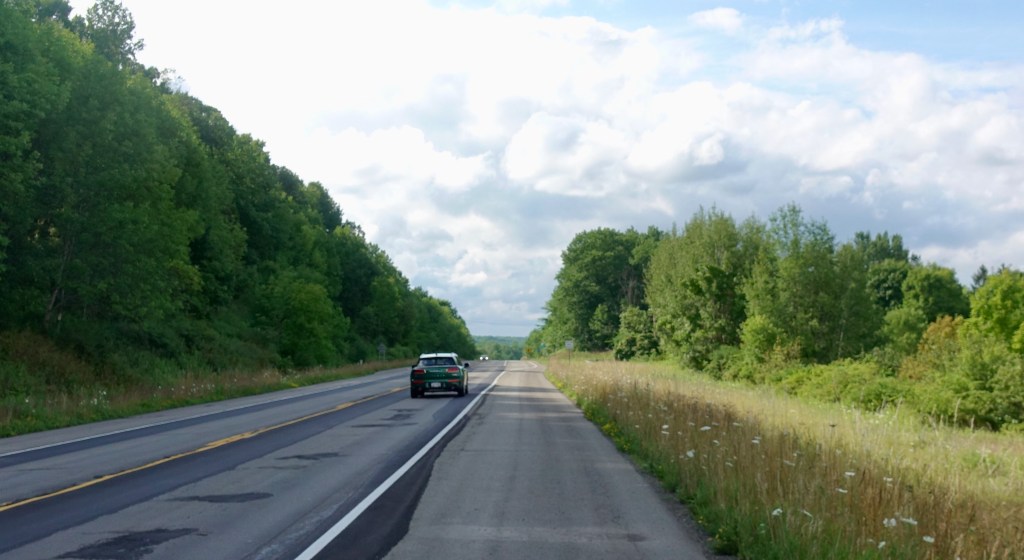 In ten miles I bicycled across the New York state line. Once in New York the two lane road had a shoulder even wider than Pennsylvania’s, making for less stressful bicycling. Geography fans take note: this area is nowhere near New York City. It is 400 miles from New York City, almost as far as the 560 miles back to Chapel Hill NC.
