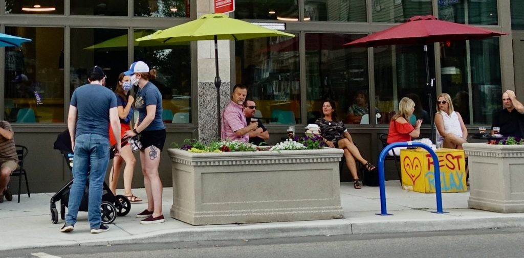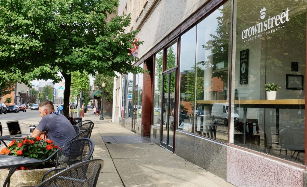 For breakfast I cycled downtown and found coffee (almond milk latte) and oatmeal at the locally owned Crown Street Roasting Company. I could sit on the sidewalk and be socially distant. It was very pleasant, totally relaxing. It made me want to sit there all day.