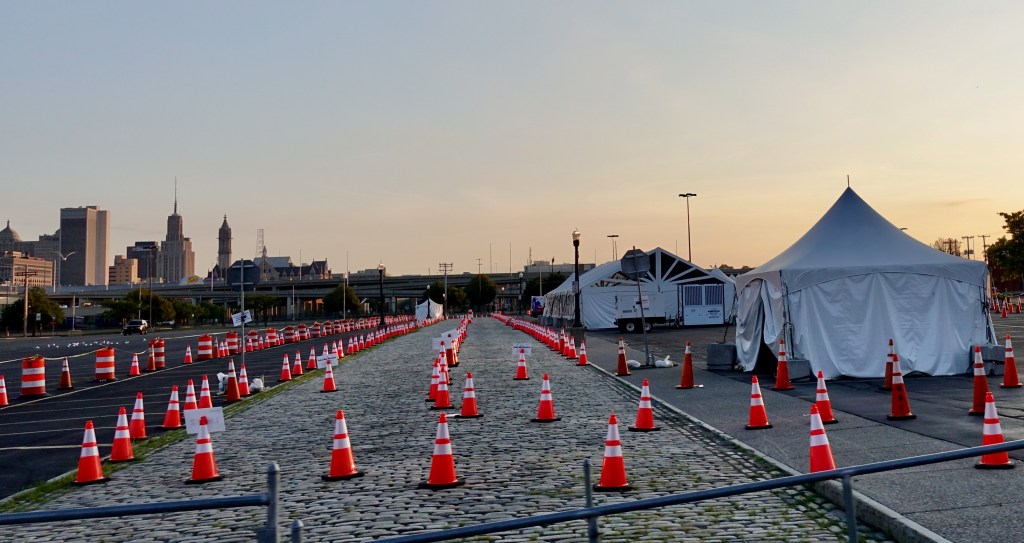 In the casino parking lot was a Covid-19 test site.