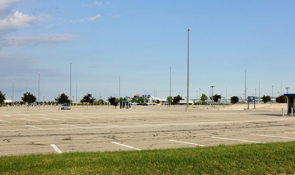 These were definitely sketchy neighborhoods but I never felt threatened bicycling through them, certainly not at 7:45 AM. I really did not see many people. I eventually arrived at the Buffalo airport, which feels like it is right in the urban fabric. In this pandemic the airport parking lot was nearly empty.