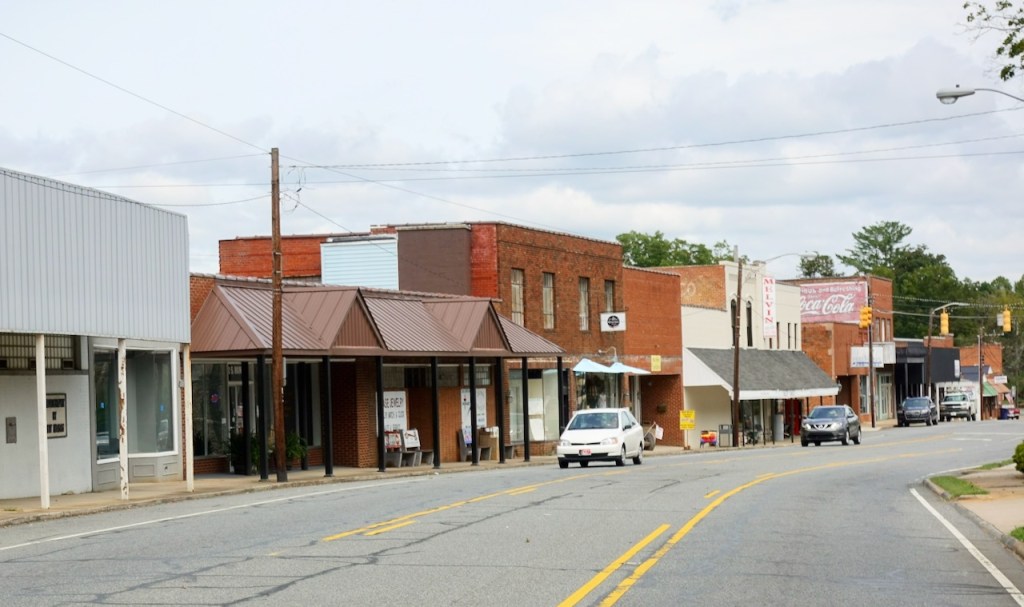 Randleman (population 4,000) is a former mill town, built originally around a waterfall on the Deep River. As I crossed the river heading towards downtown this mill looked at least semi-operational. Sometimes these old mills have been repurposed to other industries.