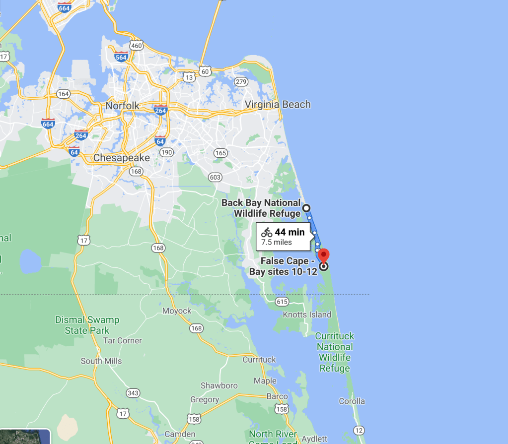 I have lived elsewhere the past forty-something years but I had heard from various sources (especially my friend Patrick Masterson) that False Cape is a great bike ride. I have learned that False Cape State Park is the only state park in Virginia that is essentially non-accessible by private automobile.