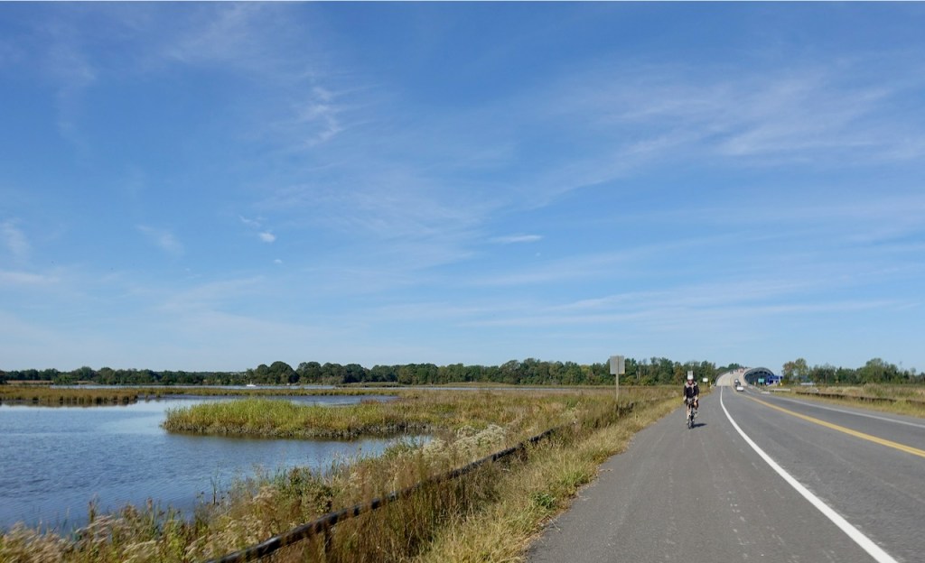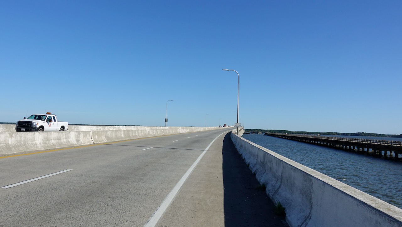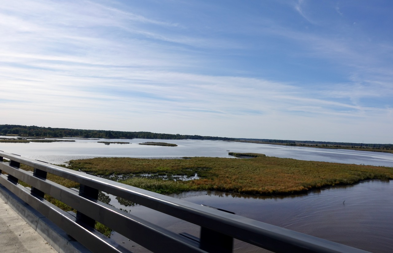 We bicycled back through Cambridge, then the long causeway across the estuary Choptank River.