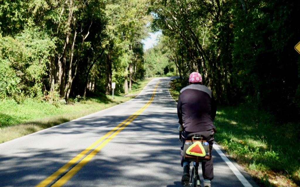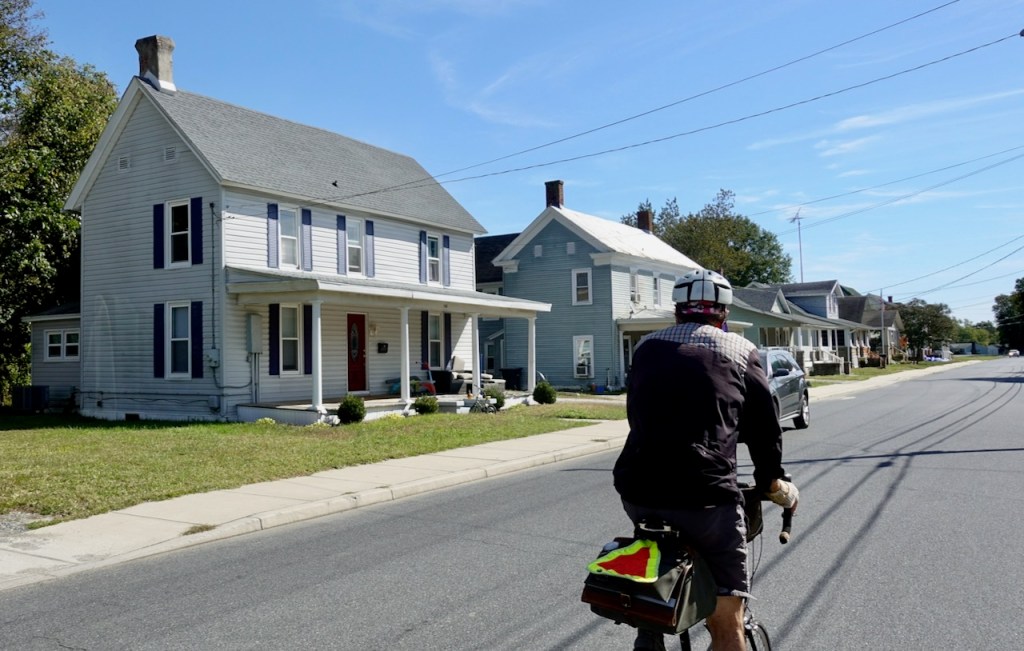 If the horse was looking for food we had none to give, so we bicycled on. We briefly crossed into the far southwestern corner of Delaware before returning to rural Maryland. There was almost no traffic yet the roads still had wide shoulders.