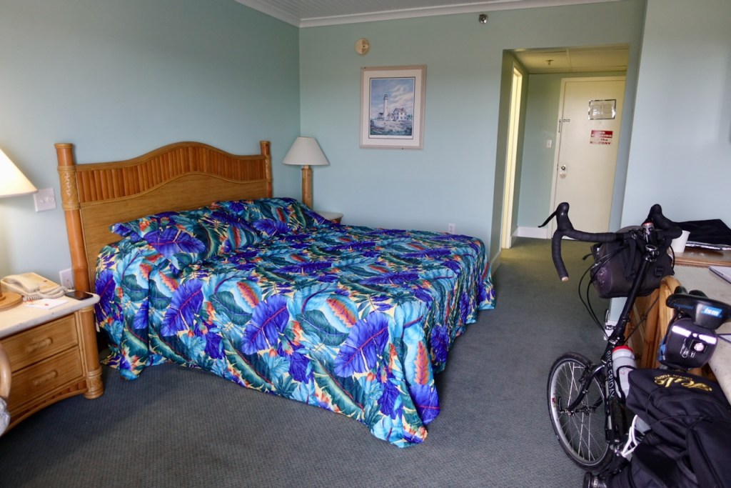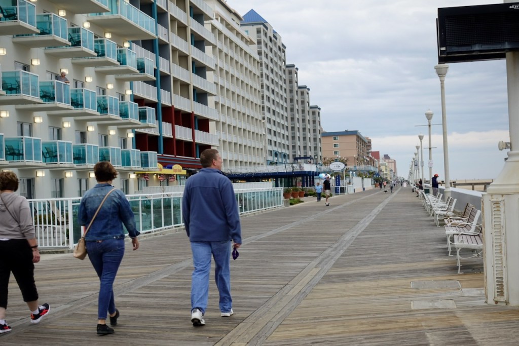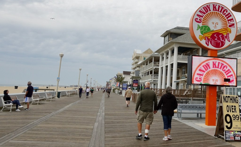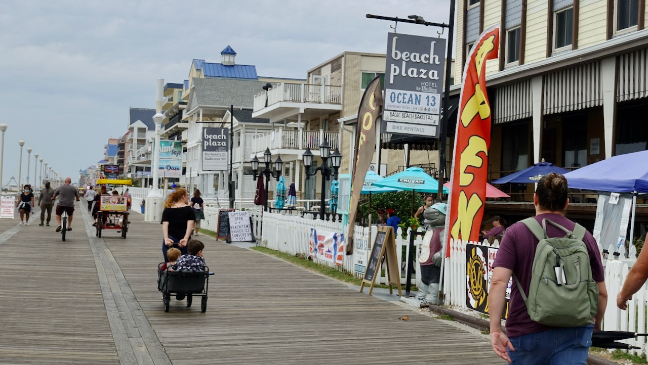 Eventually by bicycle we had almost reached the end of the barrier island, the southern part of Ocean City. We needed a place to stay. The land/road side of Ocean City had been a really unpleasant place both to look at and to ride bicycles. The boardwalk covers the southernmost part of town and is somewhat nicer.