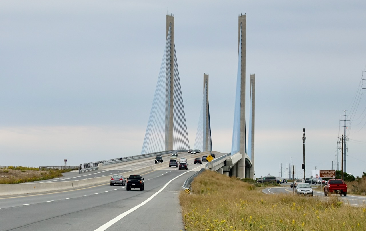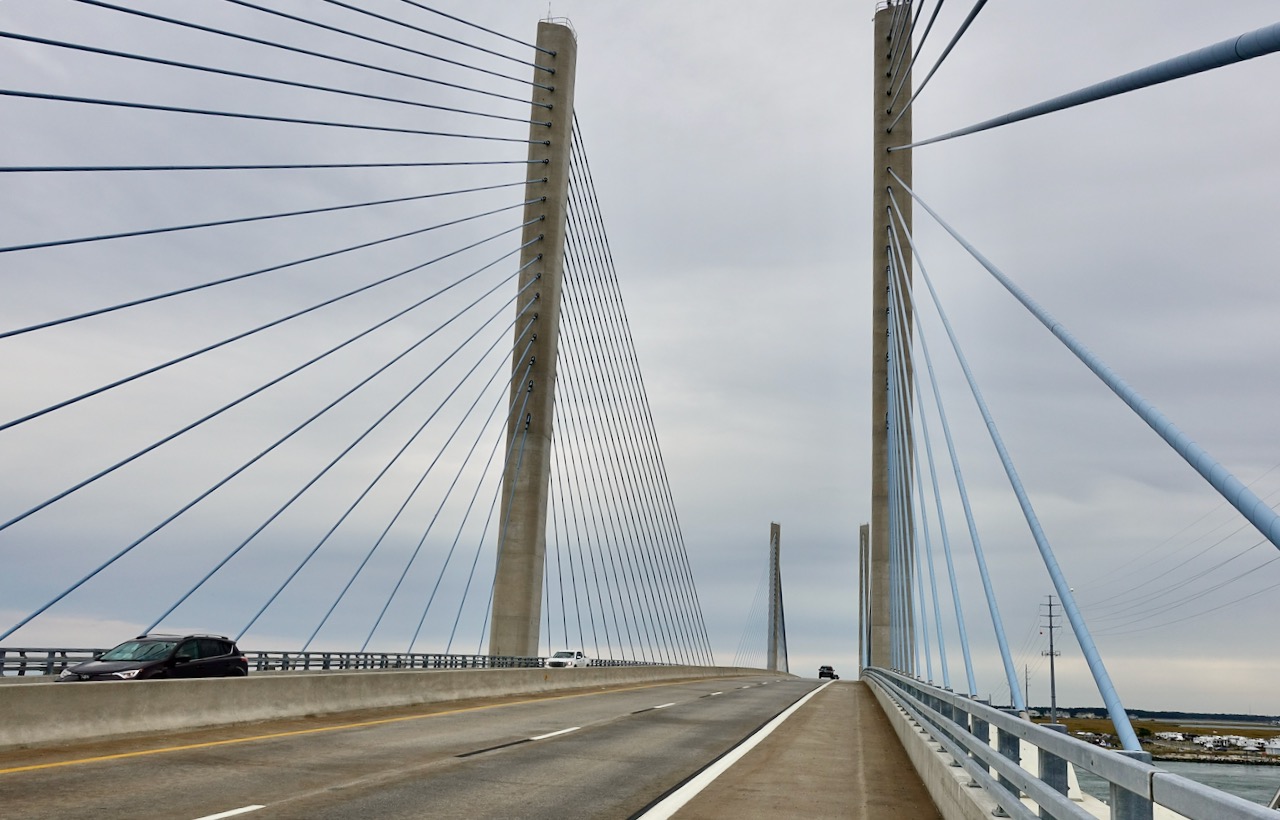 My brother the writer Alex Marshall has complained that America no longer builds great public works, writing that our bridges do not look as impressive as those being built in other countries. The Charles W. Cullen bridge on Highway One along the beach in Delaware is majestic as it crosses the tiny Indian River Inlet. I guess it needs to be high enough for boats to fit underneath.