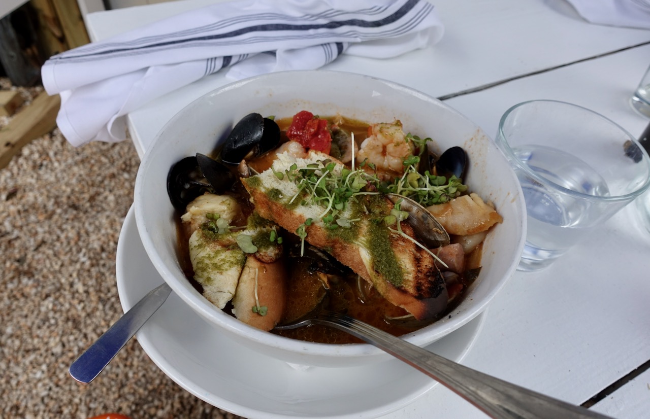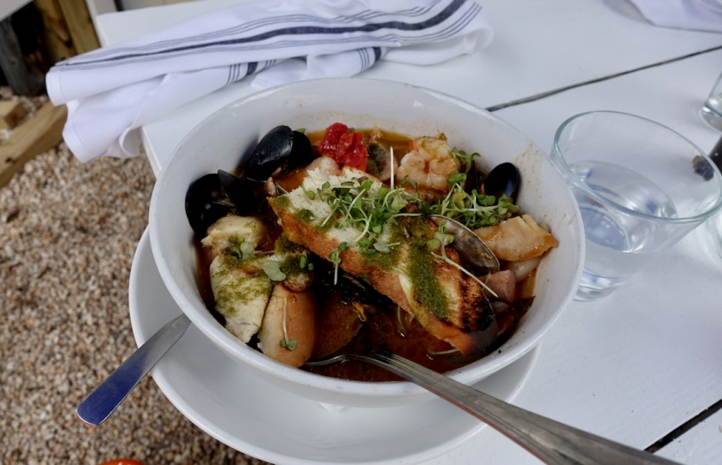 I got what the menu called “fish camp stew”, I would call it Delaware bouillabaisse. The clams had a wonderful flavor and there was a great mix of seafood. 4 – 1/2 stars out of five.
