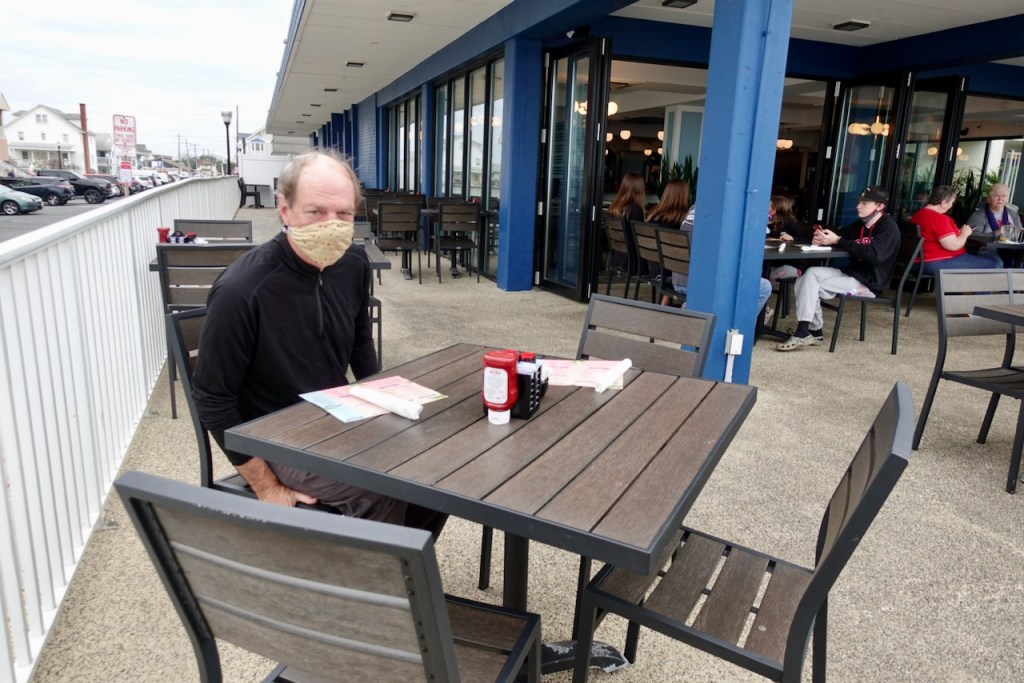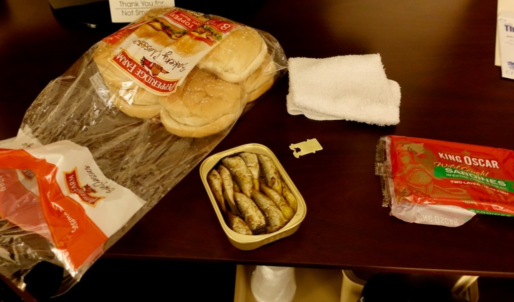 We had had a big lunch but we still needed some kind of dinner. Beach towns are not known for great food. There is a pandemic. We had gotten really lucky at lunch a few hours earlier. The pizza takeout joints near our hotel looked so unclean as to look unsafe, the kind of place that might make you sick. There was a clean bright CVS right around the corner. What kind of healthy light dinner can you buy at a CVS? After browsing the CVS I came up with the idea of sardines on a bun. (Lyman also got something at the CVS but I cannot remember what!) Eaten outside on the porch facing the boardwalk and the ocean it was actually pretty good.