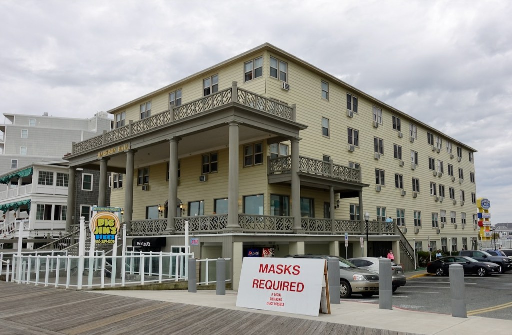 Sometimes this blog seems like my coming-of-age-novel. In the late 1960’s when I was in elementary and middle school growing up in Virginia Beach I used to hang with my friend Chip at his family’s oceanfront hotel. That hotel was very much like Harrison Hall in Ocean City. The Virginia Beach hotel was sold and subsequently torn down in the 1970’s, replaced by a motel. I have more recently noticed that the replacement motel was torn down in about 2010 and replaced with an even larger hotel. But Harrison Hall in Ocean City MD in 2020 is still here. Built in 1951 and surrounded by high rises I am not sure why Harrison Hall continues. Virginia Beach had dozens and dozens of these places and they are all gone, replaced by high rises. Harrison Hall in Ocean City MD is NOT fixed up in some kind of fancy historic preservation way. I find the stains on the carpet somehow charming and there was nothing sleazy about the place.