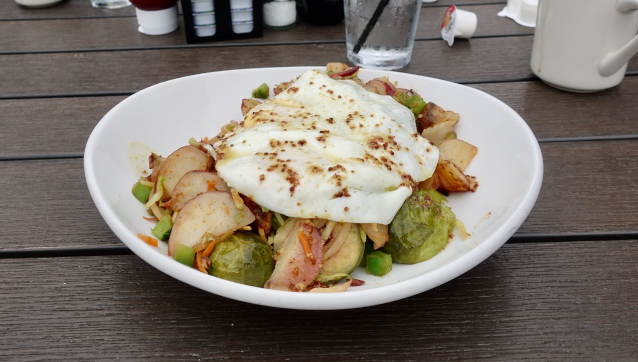I got their “breakfast veggie bowl with eggs and potatoes.” I had never had brussel sprouts for breakfast before. I rate the dish as only semi-successful but it least it was filling. The brussel sprouts were not cooked enough.