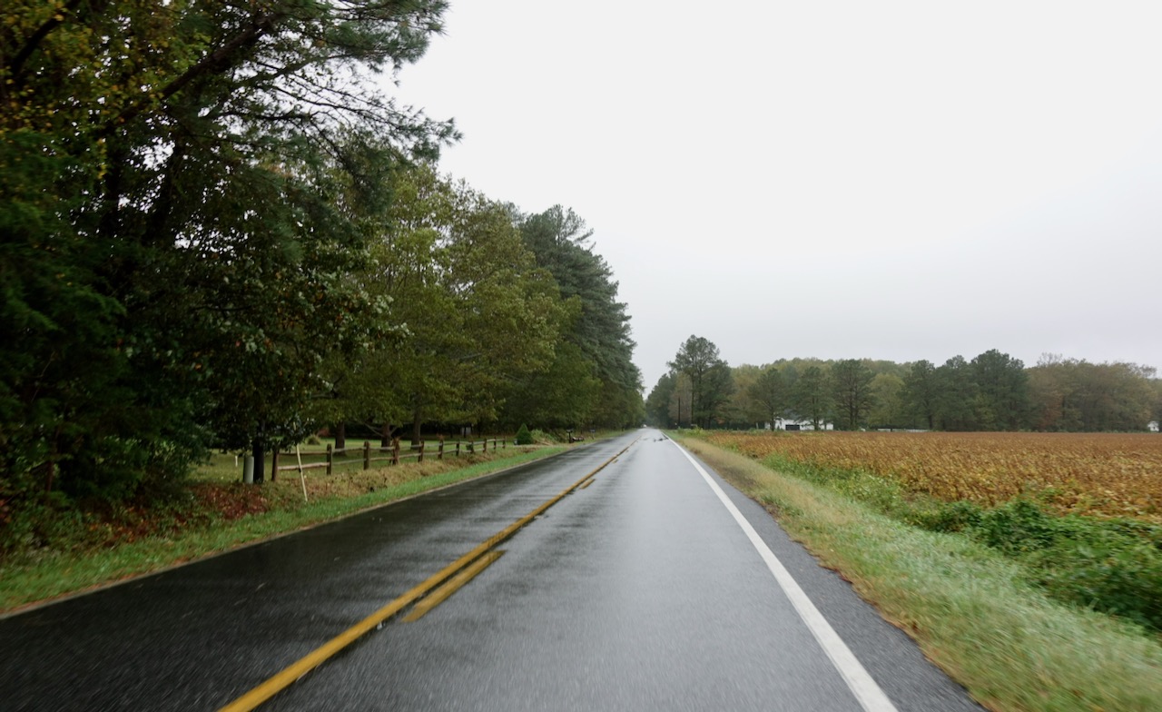 Just like the day before, our weather reports indicated that the rain was stopping, In downtown Salisbury at the coffee shop it was not raining. Once out of town OF COURSE it started raining.