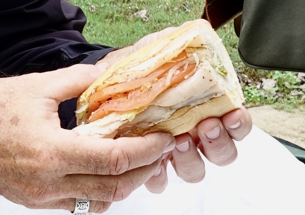 I was so wrong. We split a turkey sub. I often go to the chain Subway when out of town. This sandwich was like Subway but better in every possible way. Better meat, better bread, better cheese, better relishes. Crunchy lettuce. We ate outside at the town park. Like everything this day, there was no one around.