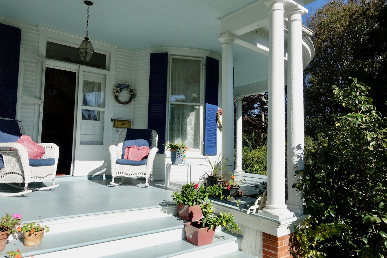 Earlier in the day I had stopped at an empty stretch of highway in the drizzle and had telephoned one of the three bed-and-breakfasts shown in Cambridge MD on Google maps. I cut to the chase and asked if there was any way they could give us two rooms for two hundred dollars total. A woman with an English accent took a long pause. “I would be losing a hundred dollars from my regular price of one hundred fifty.” Pause. “But I suppose so. What time would you be arriving?” The bed and breakfast was this house. Only after arriving did we find out the price included a fancy custom cooked breakfast.