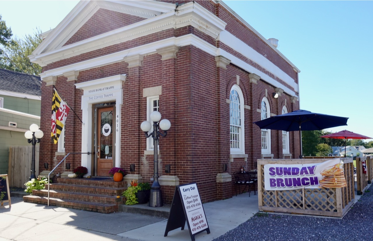 A few miles before Easton is the tiny settlement of Trappe MD. We stopped for an almond milk latte at independently owned The Coffee Trappe.