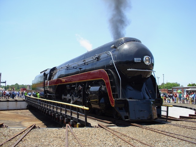 Roanoke is at a low spot in the Blue Ridge Mountains, making it a natural east/west transit point. Unusual among the larger cities of Virginia, Roanoke (current population 99,000) was not a major city in Colonial times. Before 1880 there had been a settlement here called Big Lick that had only a few hundred people. Big Lick was renamed Roanoke and became a railroad boomtown starting in about 1884. By 1900 there were 21,000 people living here, by 1950 91,000. Before it merged with other railroads in 1982 to become the now Atlanta based Norfolk Southern, for about a hundred years Roanoke was the corporate and operational headquarters of the Norfolk & Western Railway. Until 1953 all of N&W’s steam locomotives were built here, the last ones of which, the streamlined “J” class, were the about most advanced coal-powered steam locomotives ever built.