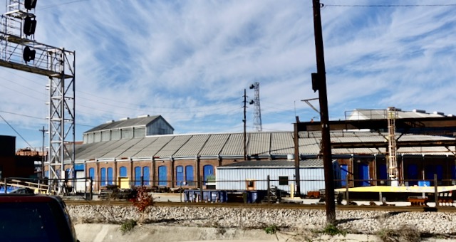 I then bicycled underneath the highway overpass next to the art museum and Downtown so that I could see the huge railroad maintenance facility Roanoke Shops. In the 1930’s it employed six thousand. This is where all the N&W steam locomotives were built. Roanoke Shops has been gradually shuttered over fifty years. The last major operations were terminated in June 2020 although even on this Sunday afternoon it appeared to me that work here was still going on.