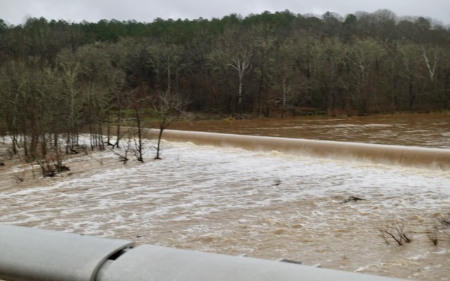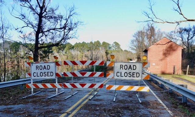 The highway crossed the Haw River by the town of Bynum NC. It had been raining for days and days. Here and subsequent rivers and creeks were overrunning their banks.