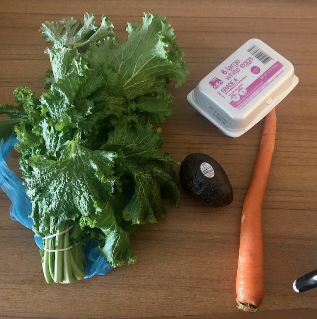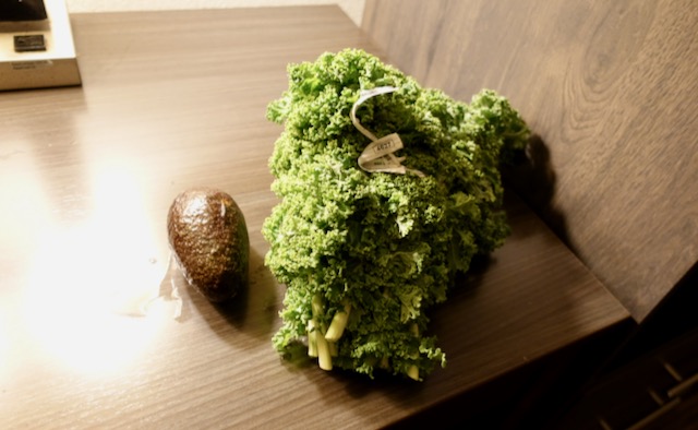 It was about five in the afternoon and it was getting dark. There was a Food Lion across the big highway and for about two dollars total I bought a nicely ripe avocado and some kale.