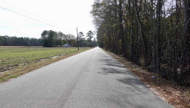 Before packing up and leaving I made my lunch: peanut butter and jelly wrapped in aluminum foil. I would eat that later in the day while cycling. I had been raining that night. The skies were clearing and the temperature was in the low forties when I pushed out. At least the landscape was flat. The wind was slightly at my back as I set out for the day’s destination: the larger city of Florence SC, about sixty miles to the south.