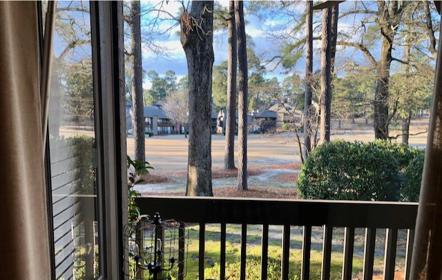 Pinehurst! A world famous golf resort. Why such a low price on the condo? I guess business is slow because of the pandemic. People can still play golf but do not feel safe going to bars and restaurants. The skies had cleared and the sun was out as I cycled through town to the quite nice Airbnb condo that fronted course Pinehurst No. 5. I was tired. It had been a long day.
