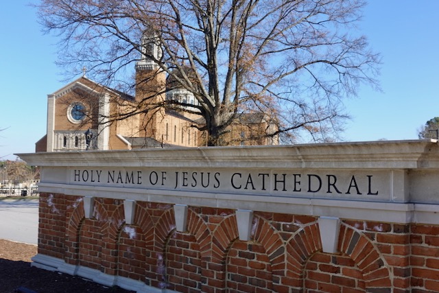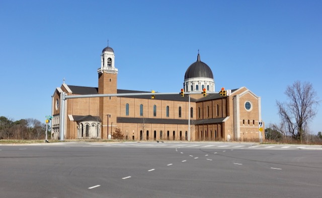 Another relatively new building in this same area is the Catholic cathedral for Raleigh: the Holy Name of Jesus Cathedral, opened in 2017. Clearly conservatives were in charge of picking an architect. The cathedral seats two thousand and sits in the middle of a giant parking lot. Couldn’t they have been more original than this?