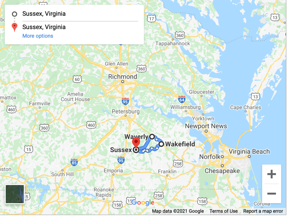 Sussex County Virginia has not grown much over the years. Its population in the year 1790 was 11,000; population 2021: 11,000. It is near enough to my home in Chapel Hill NC for a day trip.